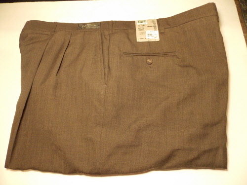 Special Price $39.95Includes Free HemmingNew Condition2013 or earlier65% Polyester / 35% Wool52 Cloth Pleated Front with Belt Loops2 1/2 " Famous Comfort Waistband Wrinkle ResistantWashable Easy Care and Fit