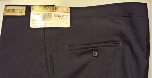 Special Price $39.95Includes Free HemmingVintage New ConditionFour Seasons 65%Polyester / 35% Wool Flat Front Side Pocket 3 1/2 " Famous Comfort Waistband Wrinkle Resistant Washable Easy Care and Fit