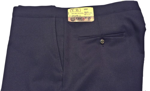 Special Price $29.95Includes Free HemmingVintage New Condition 100% Polyester Flat Front Side Pocket3 1/2 " Famous Comfort WaistbandWrinkle Resistant Washable Easy Care and Fit